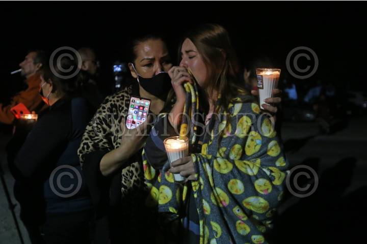 Familiares de los internos de la cárcel de máxima seguridad de Puente Grande lloran a las afueras de la prisión federal, mientras sus seres queridos son trasladados en autobús a otras instalaciones de la republica, tras la decisión del gobierno federal de cerrar la cárcel.