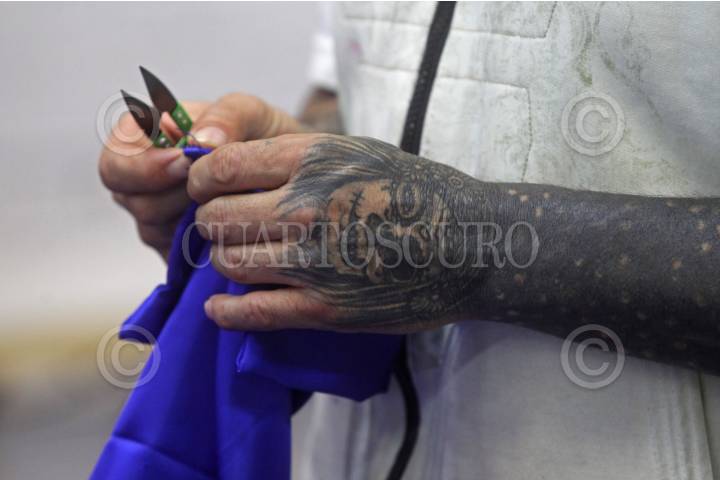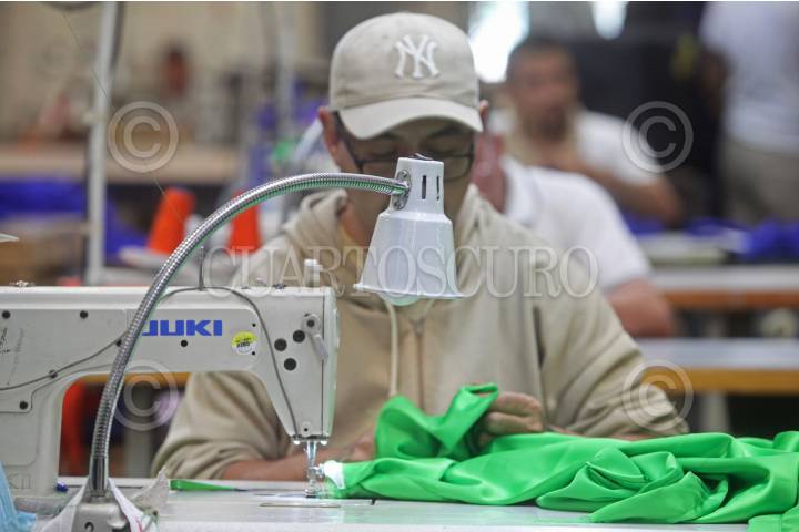 Interno de la la Penitenciaria de Puente Grande, Jalisco, trabajan en el taller de corte y confección del Penal de Sentenciados.