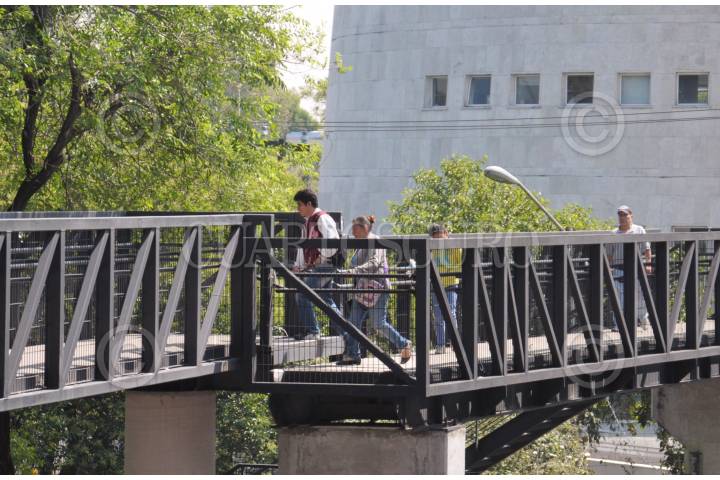 MÉXICO, D.F., 07FEBRERO2015.- Los puentes peatonales son poco usados por los capitalinos, muchos prefieren "torear" a los coches con el peligro de ser atropellados, al ser poco transitados mucha de esta infraestructura se descuida por parte de los autoridades delegacionales. FOTO: MOISÉS PABLO /CUARTOSCURO.COM