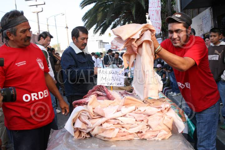 MÉXICO, D.F., 13DICIEMBRE2009.- A las afueras del Sindicato Mexicano de Electricistas se cocino carne de puerto para darle de comer a los asistentes tras la finalización de la carrera que organizo el SME. FOTO: MARCO POLO GUZMÁN HERNÁNDEZ/CUARTOSCURO.COM