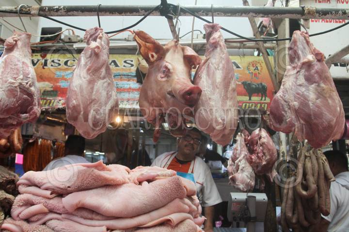 CUERNAVACA, MORELOS, 12FEBRERO2019.- Área de carnicerías en el mercado Adolfo López Mateos, donde se oferta carne de puerco y res, así como productos como son manteca, manitas de puerco, menudencias y rellena. FOTO: MARGARITO PÉREZ RETANA /CUARTOSCURO.COM