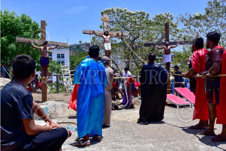 ACAPULCO, GUERRERO, 18ABRIL2025.- Vecinos de la colonia Santa Cruz en el puerto de Acapulco realizaron la tradicional representación del Viacrucis de Jesucristo que han cumplido más de 50 años a cargo de ellos. FOTO: CARLOS CARBAJAL/CUARTOSCURO.COM