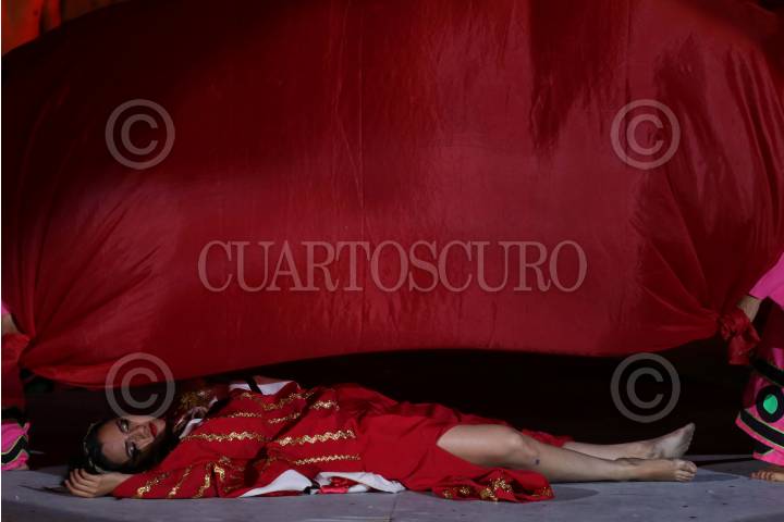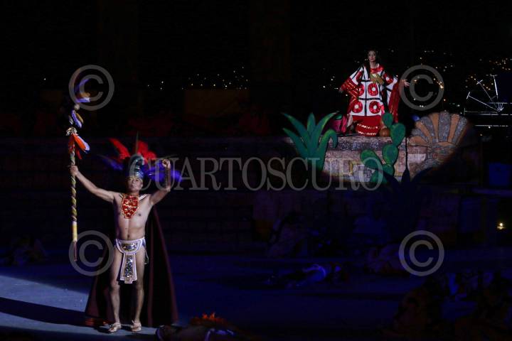 OAXACA, OAXACA, 19JULIO2015.- La noche de este domingo se llevó a cabo en el auditorio Guelaguetza la puesta en escena "Donají, la leyenda", misma que narra la historia de la princesa zapoetca Donají quien se enamoró del príncipe mixteca Nucano, la princesa finalmente se sacrificó por su pueblo y perdió la vida ante guerreros mixtecas. FOTO: ARTURO PÉREZ ALFONSO /CUARTOSCURO.COM
