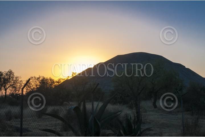 MÉXICO, D.F., 18FEBRERO2013.- Atardecer desde la zona arqueológica de Teotihuacan. El sol se va ocultando entre la pirámide que lleva su nombre. FOTO: DIEGO SIMÓN SÁNCHEZ /CUARTOSCURO.COM
