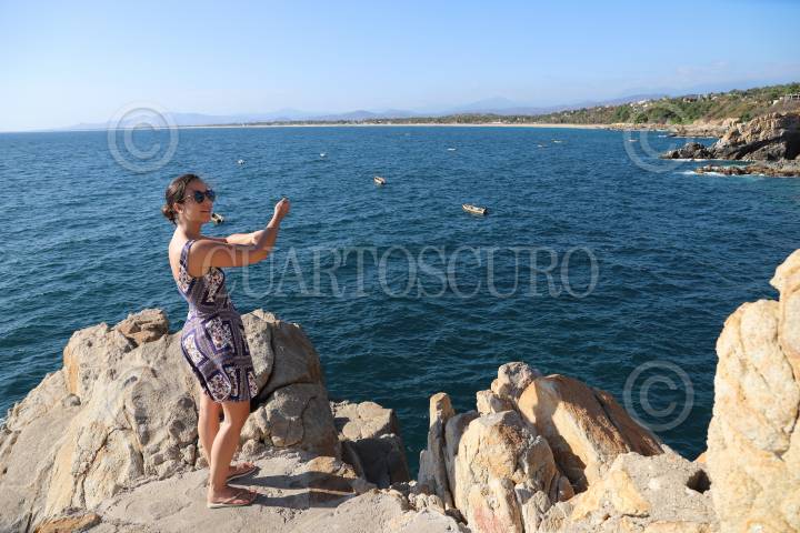 ACAPULCO, GUERRERO, 19FEBRERO2019.- Turistas disfrutan de una puesta de sol inolvidable en los acantilados del caracol, ubicado en Pie de la Cuesta. FOTO: BERNANDINO HERNÁNDEZ /CUARTOSCURO.COM