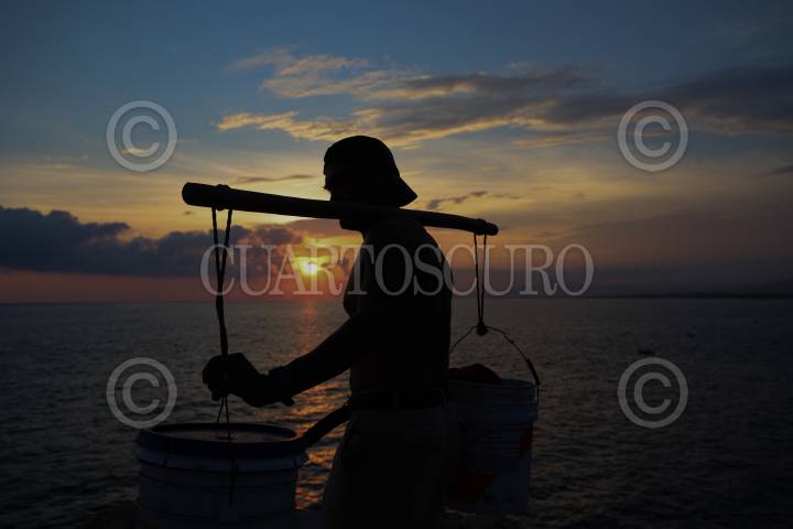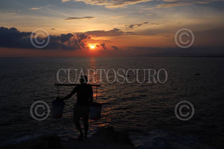 ACAPULCO, GUERRERO, 10AGOSTO2019.- Pescadores trabajan previo a la puesta de sol después de una lluvia. FOTO: BERNANDINO HERNÁNDEZ /CUARTOSCURO.COM
