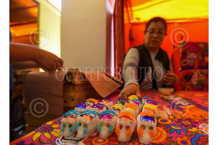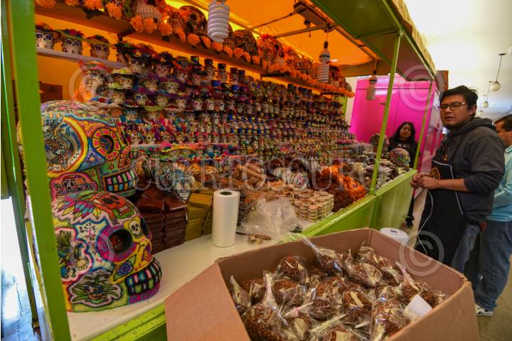 TOLUCA, ESTADO DE MÉXICO, 09OCTUBRE2024.- Comienzan a instalar los puestos para la Feria del Alfeñique en Toluca, en los Portales de Toluca serán 84 puestos y más de 300 artesanos, y estarán ofreciendo dulces tradicionales, alfeñique, calaveras de azúcar, chocolate, amaranto, papel picado del 10 de octubre al 3 de noviembre. FOTO: CRISANTA ESPINOSA AGUILAR /CUARTOSCURO.COM