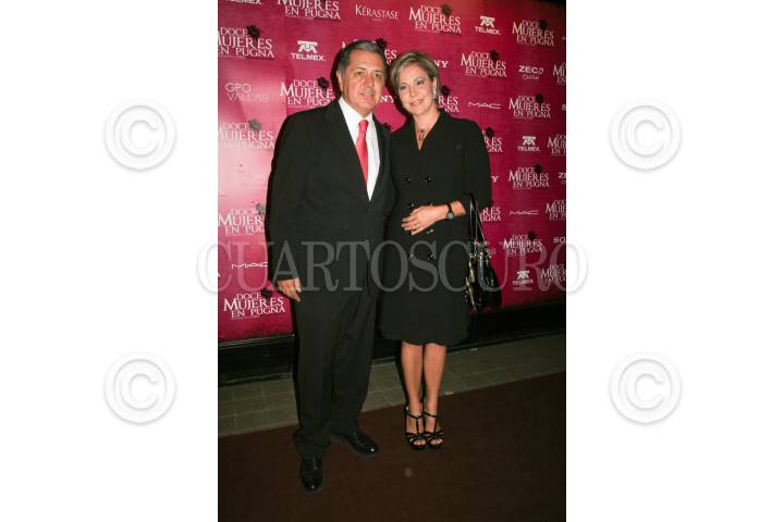 MÉXICO, D.F., 27AGOSTO2009.- El periodista Guillermo Ortega acompañado por su esposa durante la alfombra roja de la obra de teatro "12 Mujeres en Pugna" en el Centro Cultural Helénico. FOTO: ENRIQUE ORDÓÑEZ/CUARTOSCURO.COM