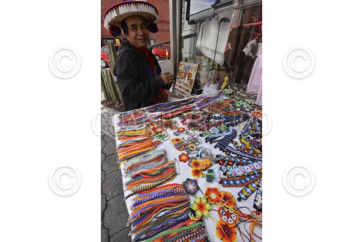 TOLUCA, ESTADO DE MÉXICO, 12NOVIEMBRE2018.- Julio García, indígena Huichol originario de Jalisco elabora pulseras, aretes, collares, llaveros elaborados de cuentas de chaquira, con gran paciencia hace diferentes figuras coloridas, que vende en las calles de la ciudad de Toluca, su familia se dedica por completo a esto y salen a vender a diversos estados de la República Mexicana. FOTO: ARTEMIO GUERRA BAZ /CUARTOSCURO.COM