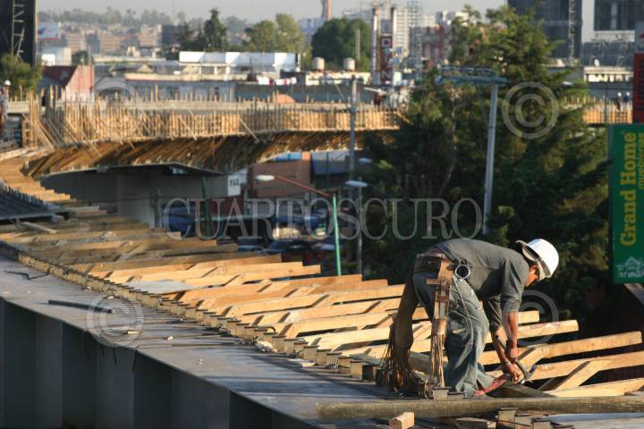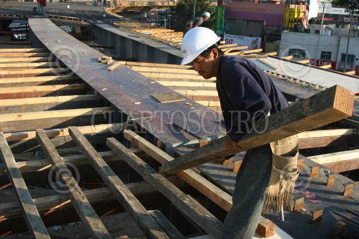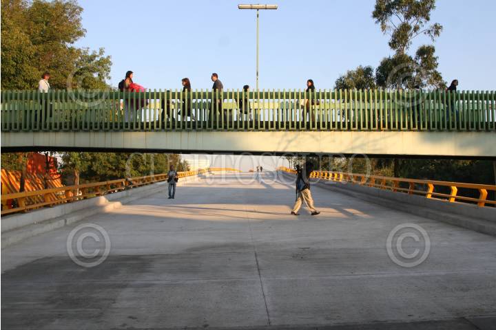 MÉXICO, D.F., 23ABRIL2009.- El jefe de gobierno del Distrito Federal, realizo una supervisión a las obras del puente vehicular en el tramo del circuito interior y Rió Mixcoac, donde se puede observar un puente peatonal qu a un no a sido retirado el cual estorbaría en el paso de los vehículos. FOTO: RICARDO CASTELAN/CUARTOSCURO.COM