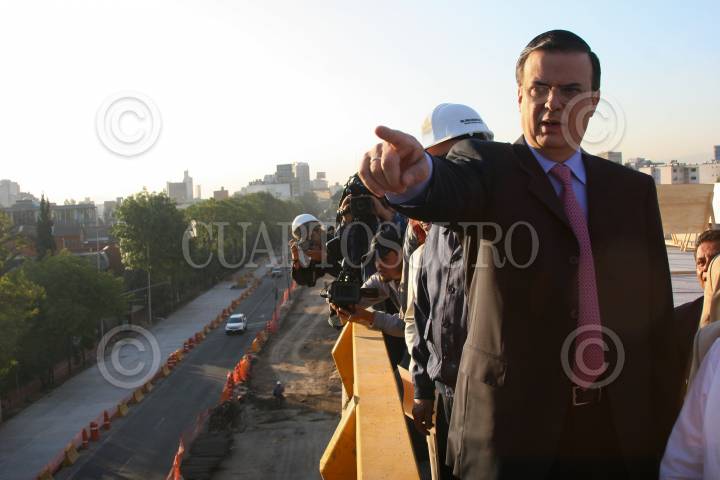 MÉXICO, D.F., 23ABRIL2009.- Marcelo Ebrard Jefe de Distrito Federal, realizo una supervision a las obras del puente vehicular en el tramo del circuito interior y Rió Mixcoac. FOTO: RICARDO CASTELAN/CUARTOSCURO.COM