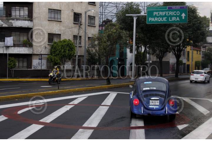 MEXICO, D.F., 12JULIO2010.- En los puntos conflictivos, en cuanto a vialidad se refiere, de la ciudad se han instaurado "puntos de cortesía" en lo que si un automóvil para cuando hay tráfico será infraccionado a partir de hoy. FOTO: IVAN STEPHENS/CUARTOSCURO.COM