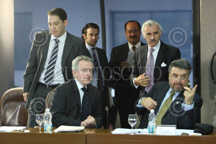MÉXICO, D.F., 23MARZO2011.- Los senadores panistas, Jorge Legorreta Ordorica, Santiago Creel Miranda, Alejandro Zapata Perogordo y Felipe González González, durante la reunión de trabajo de Comisiones Unidas de Puntos Constitucionales y de Estudios Legislativos del Senado de la República. FOTO: CUARTOSCURO.COM