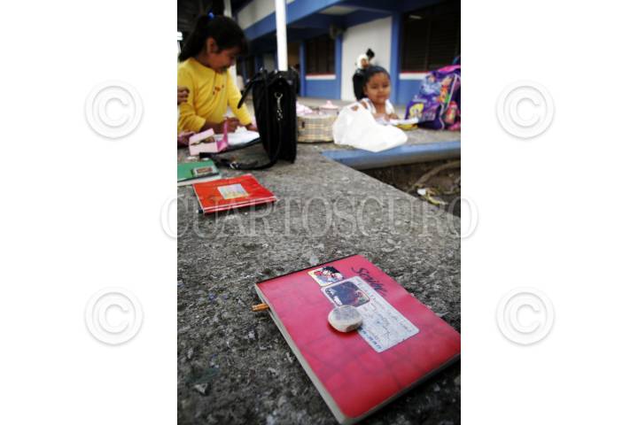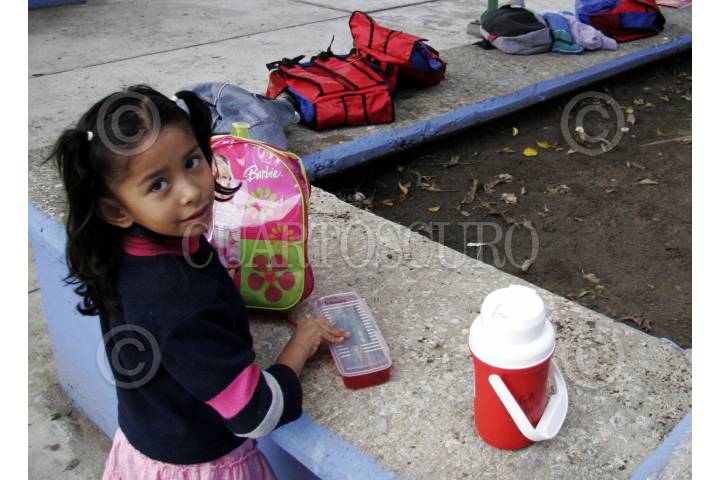 VILLAHERMOSA, TABASCO, 07ENERO2008.- Debido a la falta de asientos en las aulas escolares o de estar en mal estado; alumnos de primaria tienen que tomar apuntes en el area del patio de recreo. FOTO: MARCO POLO GUZMÁN HERNÁNDEZ/CUARTOSCURO.COM