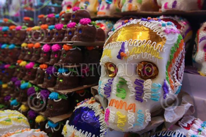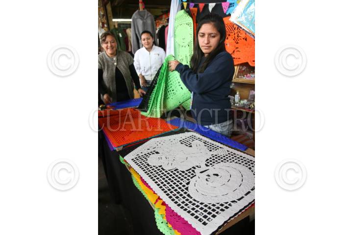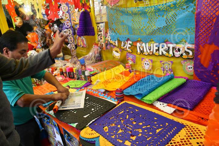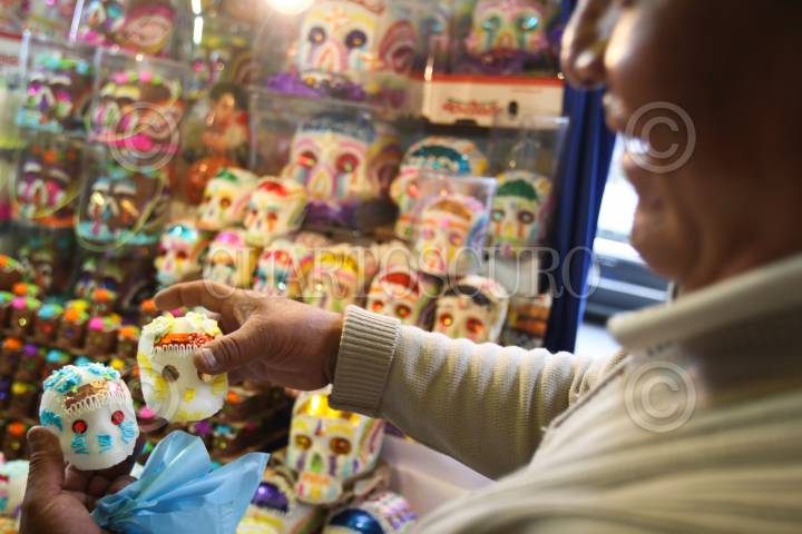MÉXICO, D.F., 29OCTUBRE2010.- En mercados de la ciudad de México, como el de San Ángel, los comerciantes ofrecen papel picado, dulces típicos y las tradicionales calaveritas de azúcar para la ofrenda del Día de Muertos. FOTO: ISAAC ESQUIVEL/CUARTOSCURO.COM