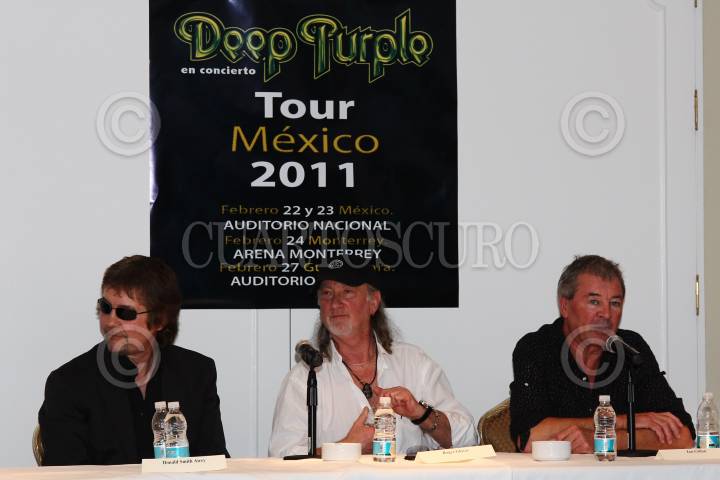 MÉXICO, D.F., 21FEBRERO2011.- Donald Smith Airey, Roger Glover e Ian Gillan, miembros de la legendaria banda británica Deep Purple, ofrecieron una conferencia de prensa para anunciar su serie de conciertos en el Distrito Federal, Monterrey y Guadalajara los días 22 y 23 (D.F.), 24 (Mty) y 27 (Gdl). Ésto se realizó en un conocido hotel de la Ciudad de México. FOTO: MISAEL VALTIERRA/CUARTOSCURO.COM