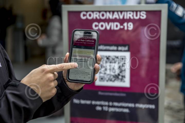 Aspectos de los códigos QR colocados a la entrada de los establecimientos del centro histórico, a fin de alertar a los usuarios de lugares cerrados si estuvieron con un paciente sospechoso o confirmado de Covid-19