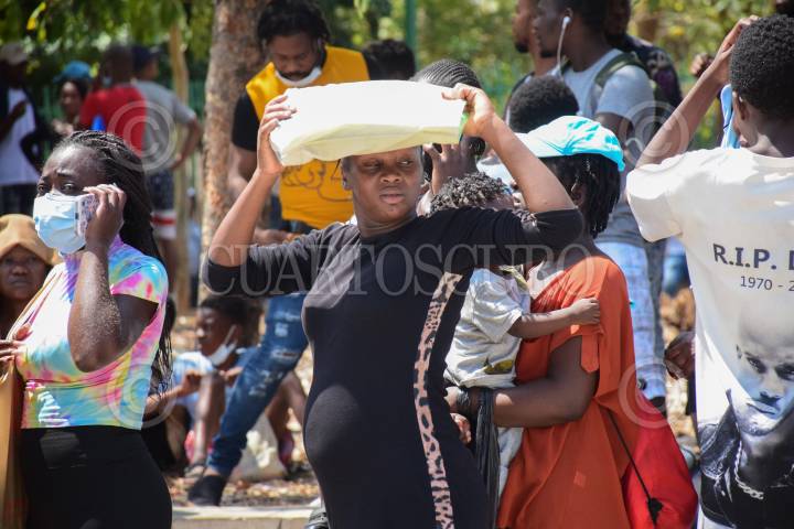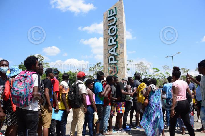 Migrantes se concentran en el parque ecológico en Tapachula. Cubanos organizan a las distintas nacionalidades para entregar un boleto con número para saber el aproximado de personas que se encuentran en la región y así buscar una alternativa.