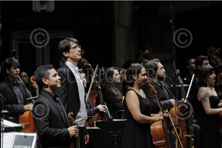CIUDAD DE MÉXICO, 26OCTUBRE2019.- La Orquesta de la Escuela Carlos Chávez con música de Silvestre Revueltas, bajo la dirección de Eduardo García Barrios, realizó la musicalización en vivo de la película “Qué viva México” de Sergei Eisenstein, en el Teatro Principal del Palacio de Bellas Artes. FOTO: MAGDALENA MONTIEL /CUARTOSCURO.COM