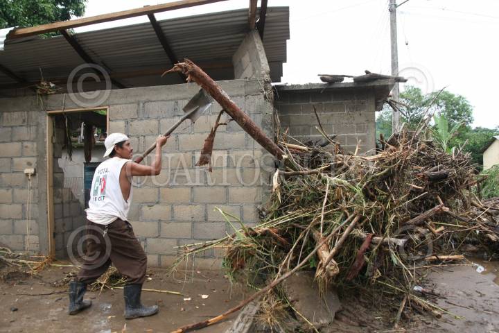 TACOTALPA, TABASCO, 29SEPTIEMBRE2010.- Un habitante en la villa Oxolotán intenta mover varios troncos que quedaron sobre su propiedad al desbordarse el río la Sierra. FOTO: MARCO POLO GUZMÁN HERNÁNDEZ/CUARTOSCURO.COM