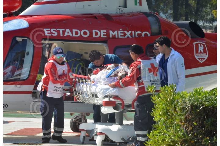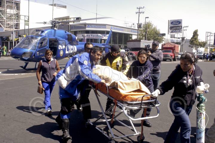 MÉXICO, D.F., 27OCTUBRE2011.- Una joven menor de edad fue trasladada en Helicóptero al Hospital Infantil de Tacubaya con quemaduras graves en un helicóptero del agrupamiento Condor que decendio en la colonia Cuautepec de la delegación Guastavo A. Madero. FOTO: LUIS CARBAYO/CUARTOSCURO.COM