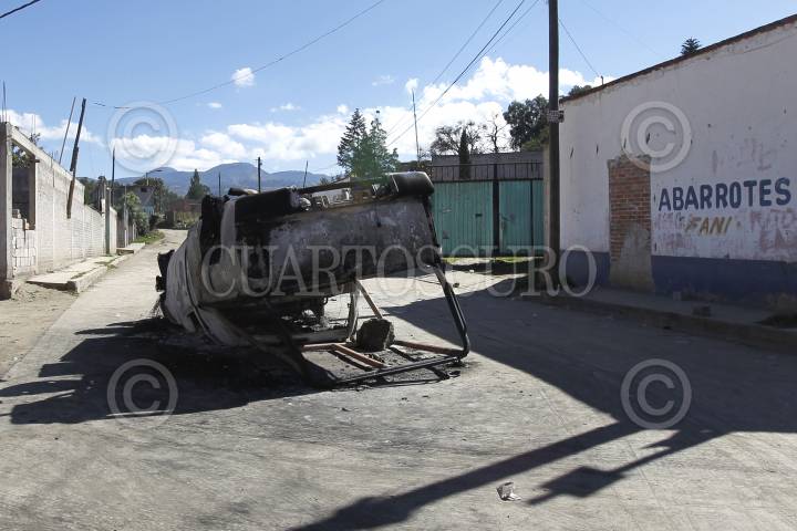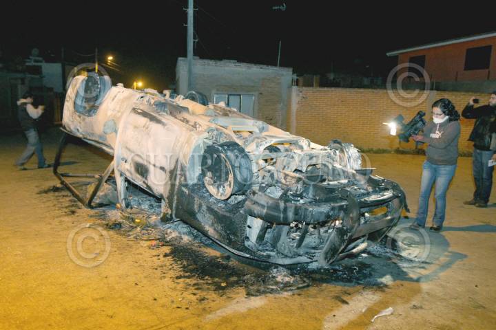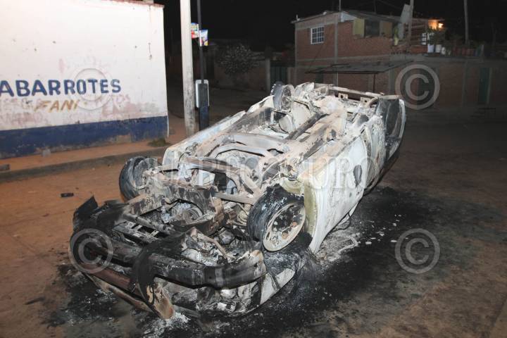 MÉXICO, D.F., 16NOVIEMBRE2013.- La madrugada de hoy pobladores de San Martín Cuautlalpan quemaron dos patrullas en protesta por la ola de secuestros que se han realizado desde noviembre del año pasado hasta la fecha. FOTO: LUIS CARBAYO /CUARTOSCURO.COM