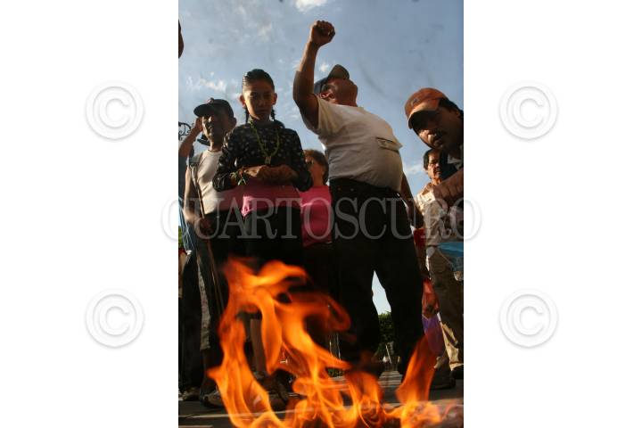 MÉXICO, D.F., 30ABRIL2009.- Simpatizantes del gobierno legitimo de Andres Manuel Lopez Obrador, quemaron tapabocas en protesta en contra del gobierno federal, ya que según ellos esta epidemia solo es un invento para causas pánico en la población. FOTO: RICARDO CASTELAN/CUARTOSCURO.COM