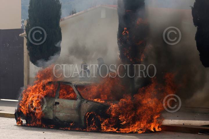 MÉXICO, D.F., 18OCTUBRE2008.- Los maestros disidentes de la sección nueve del Sindicato Nacional de Trabajadores de la Educación (SNTE), marcharon del Auditorio Nacional a casa de Elba Esther Gordillo donde quemaron dos monigotes con forma de rata, frente a la casa lideresa sindical. FOTO: SÁSHENKA GUTIÉRREZ/CUARTOSCURO.COM