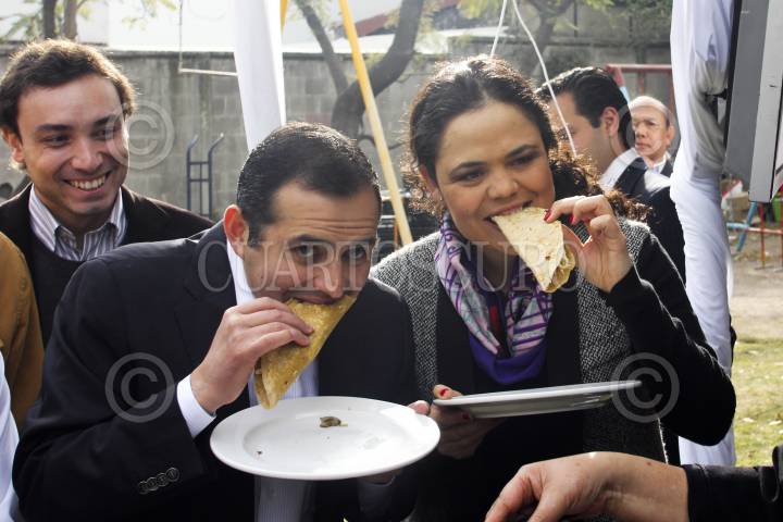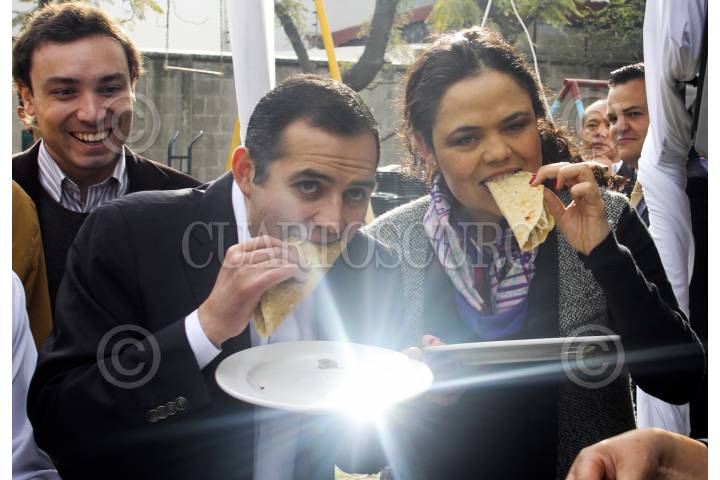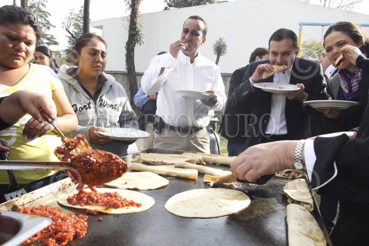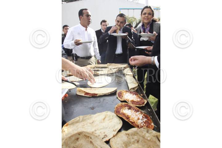 MÉXICO, D.F., 13ENERO2012.- Ernesto Cordero, precandidato del PAN a la presidencia de la república, convivió con militantes del PAN del DF en la colonia las Aguilas donde desayuno quesadillas con alguno de sus colaboradores. FOTO: SAÚL LÓPEZ/CUARTOSCURO.COM