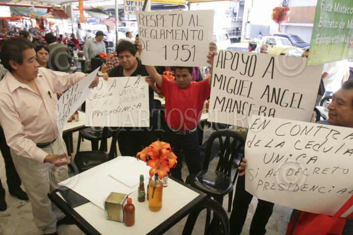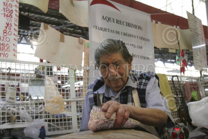 MÉXICO, D.F. 28ENERO2013- Integrantes de la Coordinación de Mercados Públicos y Concentraciones del Distrito Federal externaron su rechazo al refrendo de la Cédula Única de Empadronamiento, impulsada por el Gobierno del D.F., pues los locatarios aseguran que los hará renunciar al derecho de concesionario como establece el decreto presidencial de 1951 y con ello privatizar los centros de abasto capitalinos. La próxima semana acudiran a las oficinas de la jefatura de gobierno para buscar una reunión con el Ejecutivo local, de no ser atendidos cerrarán los mercados públicos un día, anunció el representante de los locatarios, Fernando García, en conferencia de prensa. FOTO: JUAN PABLO ZAMORA /CUARTOSCURO.COM