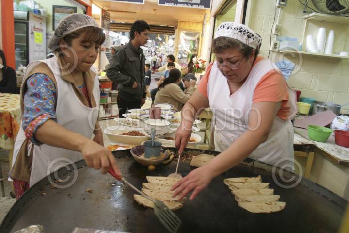 CIUDAD DE MÉXICO, 17AGOSTO2018.- Hora de la comida en la calle de Zamora. Quesadillas, Gorditas, tlacoyos, para llevar o comer ahí mismo. FOTO: VICTORIA VALTIERRA /CUARTOSCURO.COM