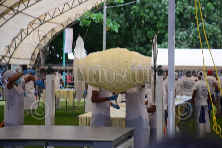 Ochenta productores de queso elaboraron la bola de quesillo más grande del mundo, la cual peso 558 kg, con esto tuvieron un récord Guinness.