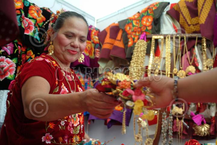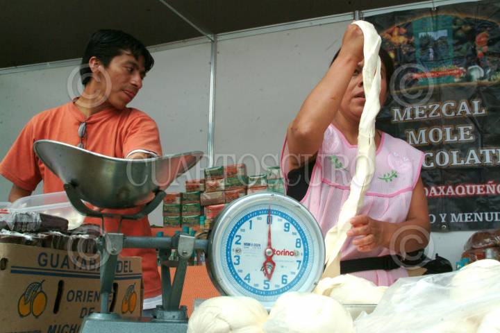 MEXICO, D.F. 01OCTUBRE2004.- Una oaxaqueña mostró sus productos en la exposición gastronómica y cultural del estado de Oaxaca que se realizó en la explanada de la delegación Benito Juárez. FOTO: Iván Stephens/CUARTOSCURO.COM