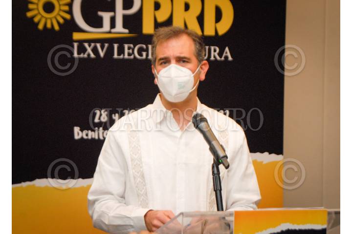 Lorenzo Córdova Vianello, consejero presidente del INE, durante su ponencia en la reunión plenaria del PRD llevada a cabo en la entid