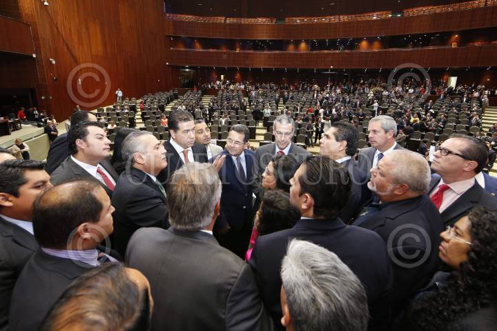MÉXICO, D.F., 01AGOSTO2014.- Durante la intervención del diputado de Nueva Alianza, Fernado Bibriesca Sahagun, legisladores de izquierda tomaron la tribuna en rechazo a las leyes secundarias de la Reforma Energética. FOTO: CUARTOSCURO.COM