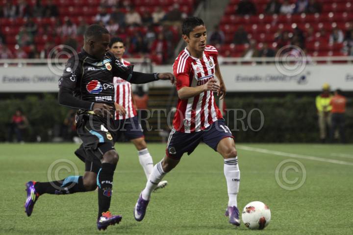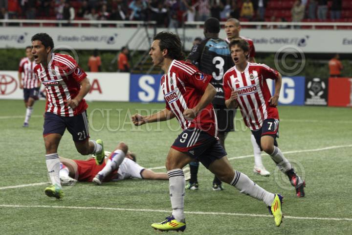 ZAPOPAN, JALISCO, 07FEBRERO2012.- Las Chivas del Guadalajara se enfrentaron a la escuadra Deportivo Quito, en partido correspondiente a la jornada 1 de Copa Libertadores de América 2012. La cita fue en el estadio Omnilife, en donde de ultimo momento el conjunto local rescata el empate a un tanto, con gol de Omar Arellano. FOTO: FERNANDO CARRANZA GARCIA/CUARTOSCURO.COM