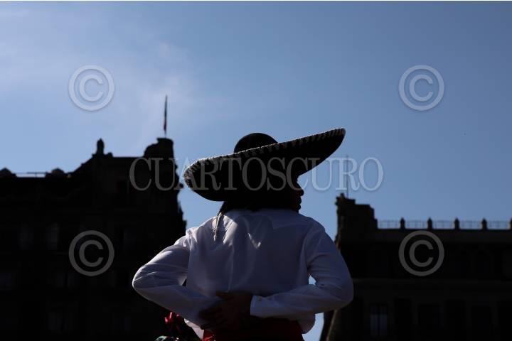 CIUDAD DE MÉXICO, 10NOVIEMBRE2024.- Un mariachi baila en el Zócalo de la capital. FOTO: DANIEL AUGUSTO/ CUARTOSCURO.COM