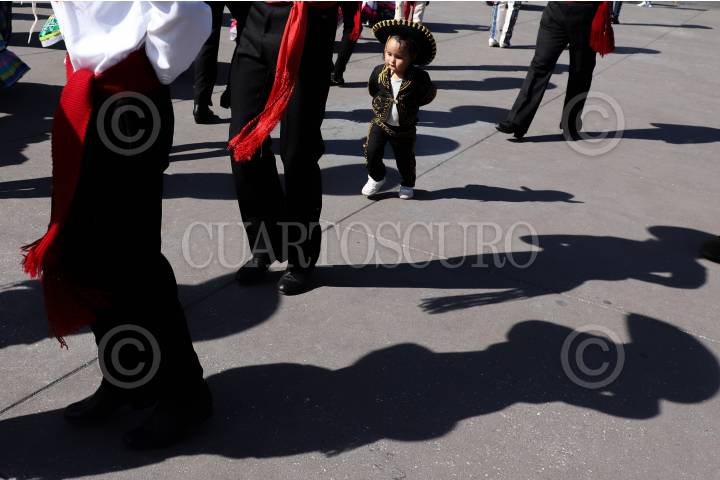CIUDAD DE MÉXICO, 10NOVIEMBRE2024.- Un infante caracterizado como mariachis, baila junto a los demás mariachis que se reunieron en el Zócalo para romper el Récord Guinness. FOTO: DANIEL AUGUSTO/ CUARTOSCURO.COM