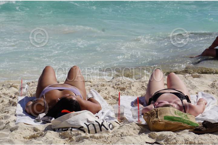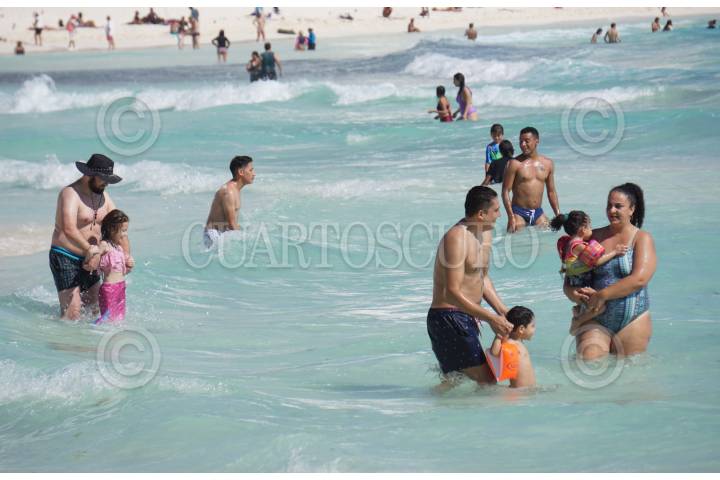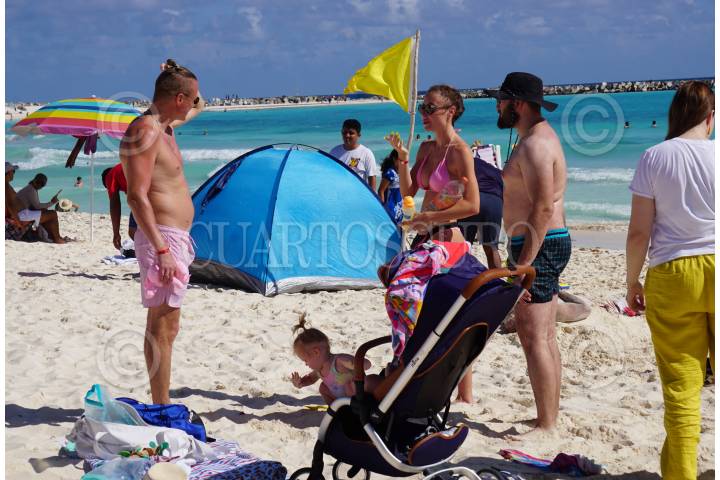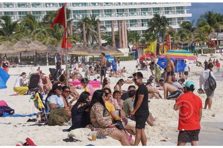 Hoy el récord de operaciones del aeropuerto de Cancún es de 719 vuelos rompiendo récord en años, se espera turismo Nacional e Internacional para estas vacaciones decembrinas, turistas y locales disfrutan del mar caribe en playa Gaviota Azul.
