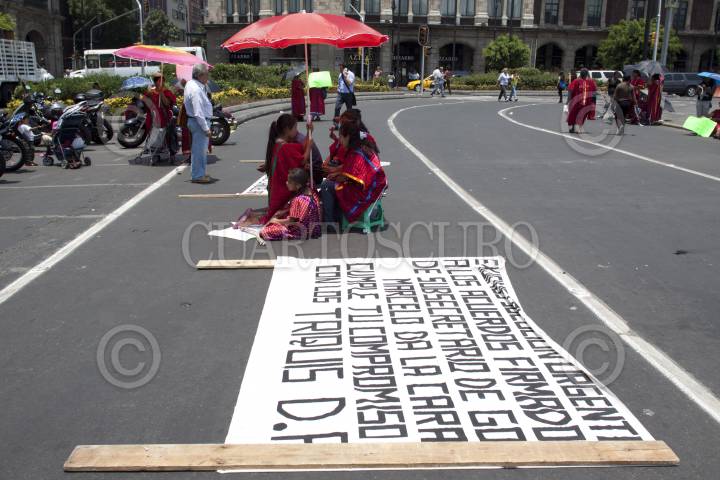 MÉXICO, D.F., 02MAYO2012.- Indígenas triquis se manifestaron afuera del Palacio del Ayuntamiento para exigir la solución urgente a los acuerdos firmados con la administración del Jefe de Gobierno Marcelo Ebrard Casaubón. Los manifestantes piden se les otorgue un predio con viviendas dignas para su comunidad, que según afirman por muchos años ha vivido de manera irregular en la zona de La Ciudadela. FOTO: MOISÉS PABLO /CUARTOSCURO.COM