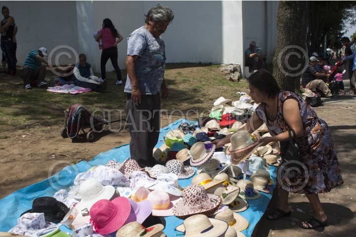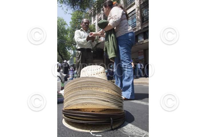 MÉXICO, D.F., 11ABRIL2015.- Venta de sombreros para el sol en la explanada de la delegación Cuajimalpa. FOTO: MOISÉS PABLO /CUARTOSCURO.COM