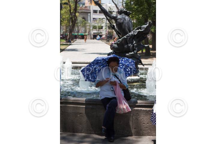 MÉXICO, D.F., 10ABRIL2015.- Una mujer toma un respiro ante el intenso calor que siente en el Valle de México sentada en una de las fuentes de la Alameda Central. FOTO: MOISÉS PABLO /CUARTOSCURO.COM