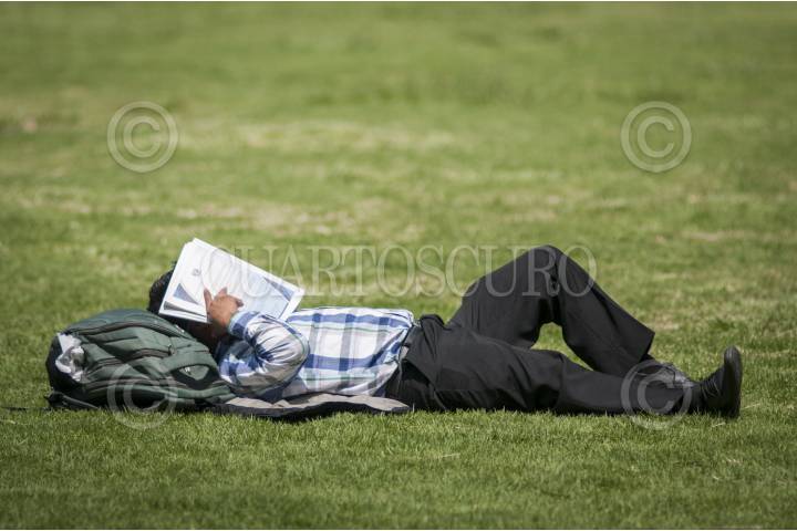 MÉXICO, D.F., 10AGOSTO2015.- Un hombre descansa sobre las islas de Ciudad Universitaria, tapándose el rostro ante los rayos del Sol. FOTO: DIEGO SIMÓN SÁNCHEZ /CUARTOSCURO.COM