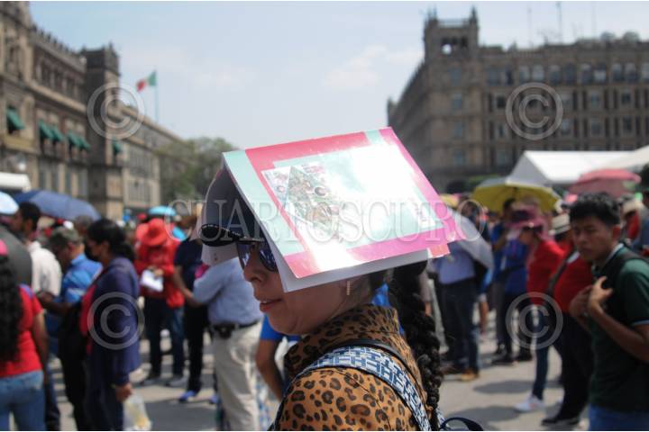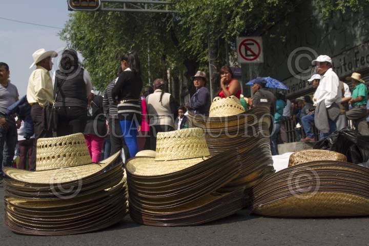 CIUDAD DE MÉXICO, 09MAYO2016.- Venta de sombreros durante una protesta en las inmediaciones de la Secretaría de Gobernación, se reporta alta radiación solar y regular calidad del aire. FOTO: MOISÉS PABLO /CUARTOSCURO.COM