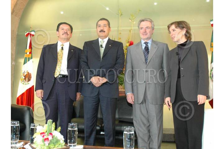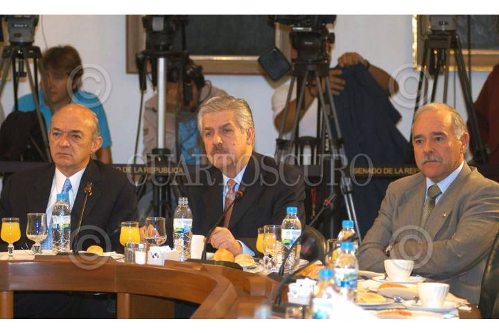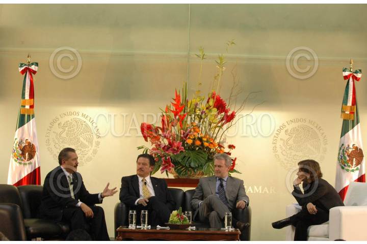 MÉXICO, D.F., 19SEPTIEMBRE2007.- Los senadores Carlos Navarrete, Manlio Fabio Beltrones, Santiago Creel y la periodista Carmen Aristegui, durante el foro "Mejores Prácticas Legislativas para la Radiodifusión en México" en el Senado. FOTO: ISRAEL VERA/CUARTOSCURO.COM