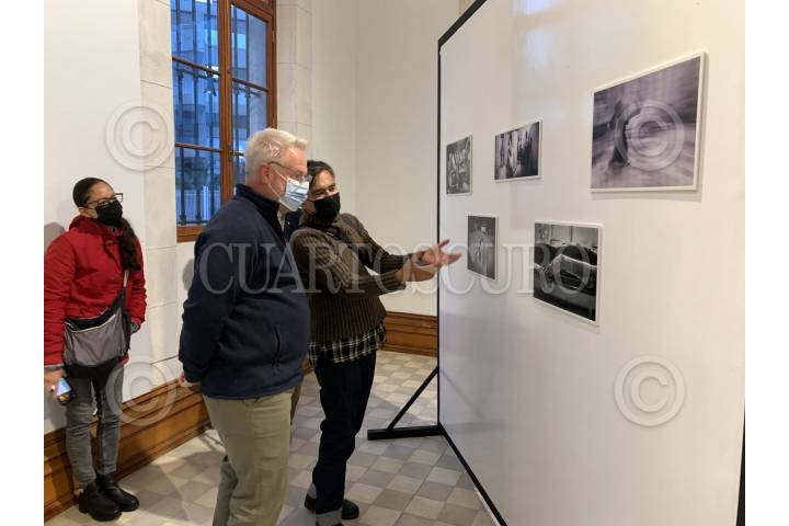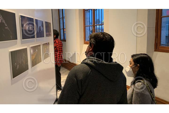 Una persona observa la exposición del concurso latinoamericano de fotografía Cuartoscuro 2022 “Nuestra Huella en el Planta”, que se inauguro esta tarde en las instalaciones de la Universidad Iteso.