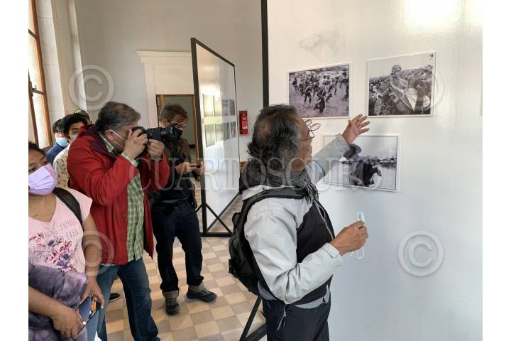 Pedro Valtierra presentando su exposición como parte de las actividades de Festival Internacional de Fotografía de Arica