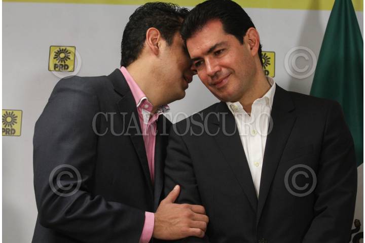 CIUDAD DE MÉXICO, 24MARZO2016.- Agustín Basave, presidente del PRD nacional, presentó oficialmente a Rafael Flores como candidato a la gubernatura de Zacatecas por el partido del sol azteca. Beatriz Mojica, secretaria general del partido, Alejandro, Sánchez Camacho, secretario de Acción Política y Estrategia, Ángel Ávila, integrante de la mesa directiva, alzaron las manos del candidato al finalizar la conferencia ante medios de comunicación. FOTO: MARÍA JOSÉ MARTÍNEZ /CUARTOSCURO.COM