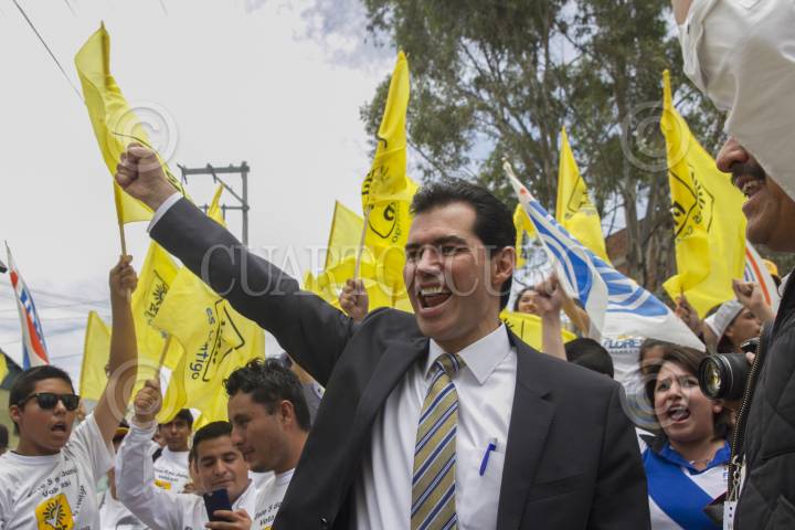 ZACATECAS, ZACATECAS, 08MAYO2016.- El candidato a la gubernatura de la coalición PAN-PRD Rafael Flores salió del Instituto Zacatecano de Cultura, en donde se realizó el debate electoral con los otros candidatos, a saludar a sus seguidores. FOTO: MOISÉS PABLO /CUARTOSCURO.COM