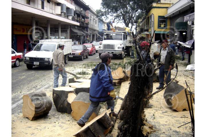 XALAPA, VERACRUZ 23OCTUBRE2007.- El paso del frente frío dejó daños en la capital del estado, en el centro histórico un emblemático árbol se cayó de raiz. FOTO: JORGE VALDÉS/CUARTOSCURO.COM